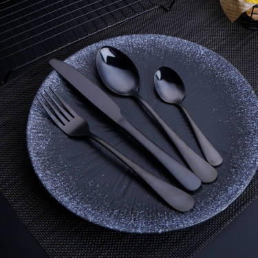 16 Piece Black Flatware Set, Stainless Steel, Service for 4